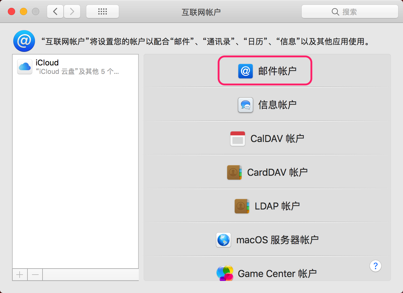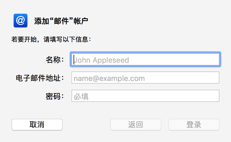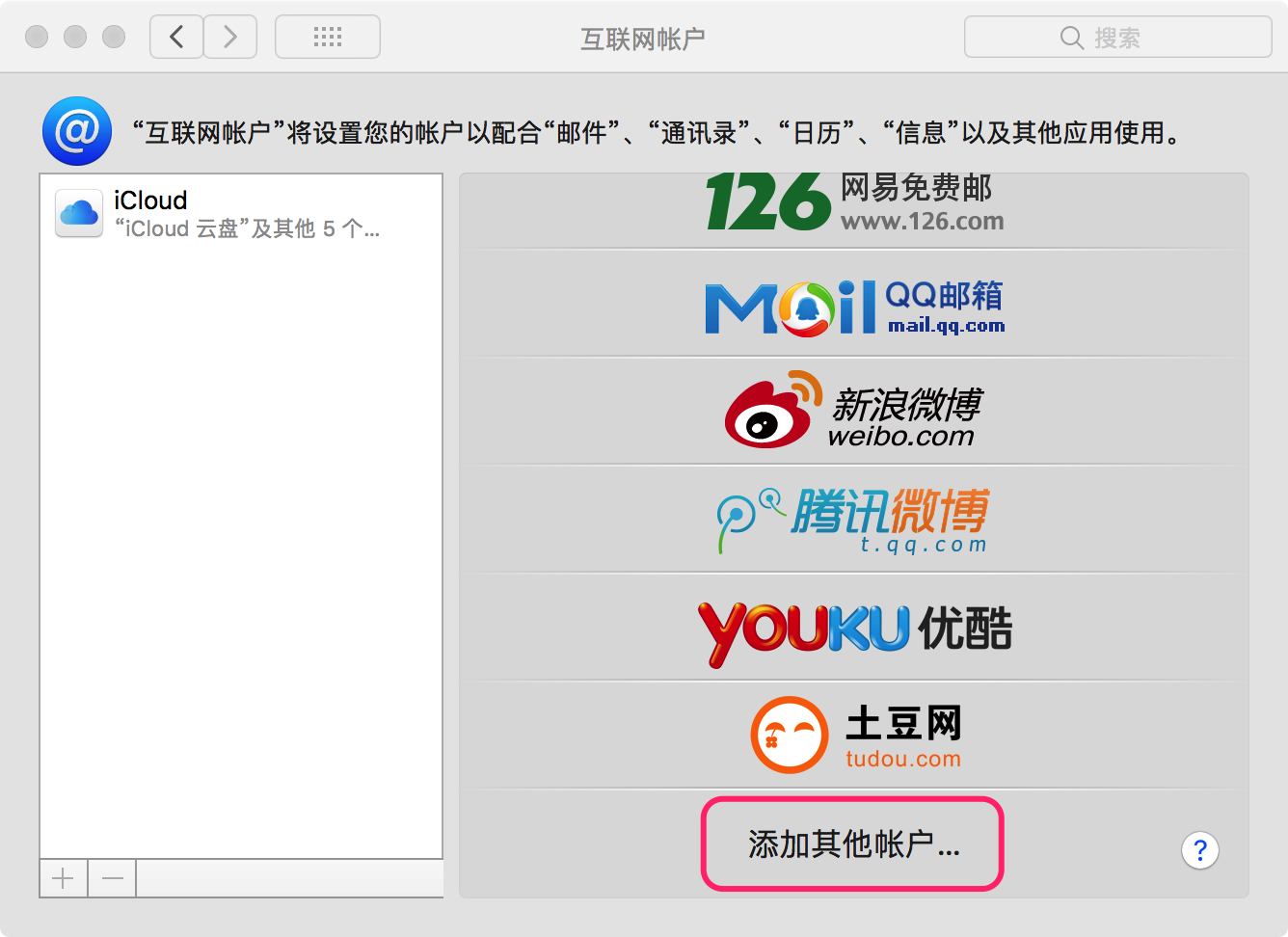 第一步:在“系统偏好设置”—“互联网账户”—“添加其他账户”—“邮件账户”